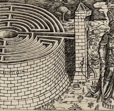 1. Le labyrinthe symbolise souvent le processus d’individuation. « Le labyrinthe de Crète et l’histoire de Thésée et d’Ariane », Vers 1446, Baccio Baldini. © BnF